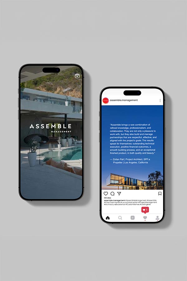 Savy developed a comprehensive social media strategy and guidelines for Assemble Management, establishing a consistent brand presence across Instagram and LinkedIn. The guidelines define content pillars, posting cadence, and strict confidentiality protocols that protect client privacy while showcasing the firm’s portfolio of high-end residential projects. Savy provides ongoing support, including content creation, scheduling, and coordination with the Assemble team to ensure every post reflects the brand’s confident, sophisticated voice.