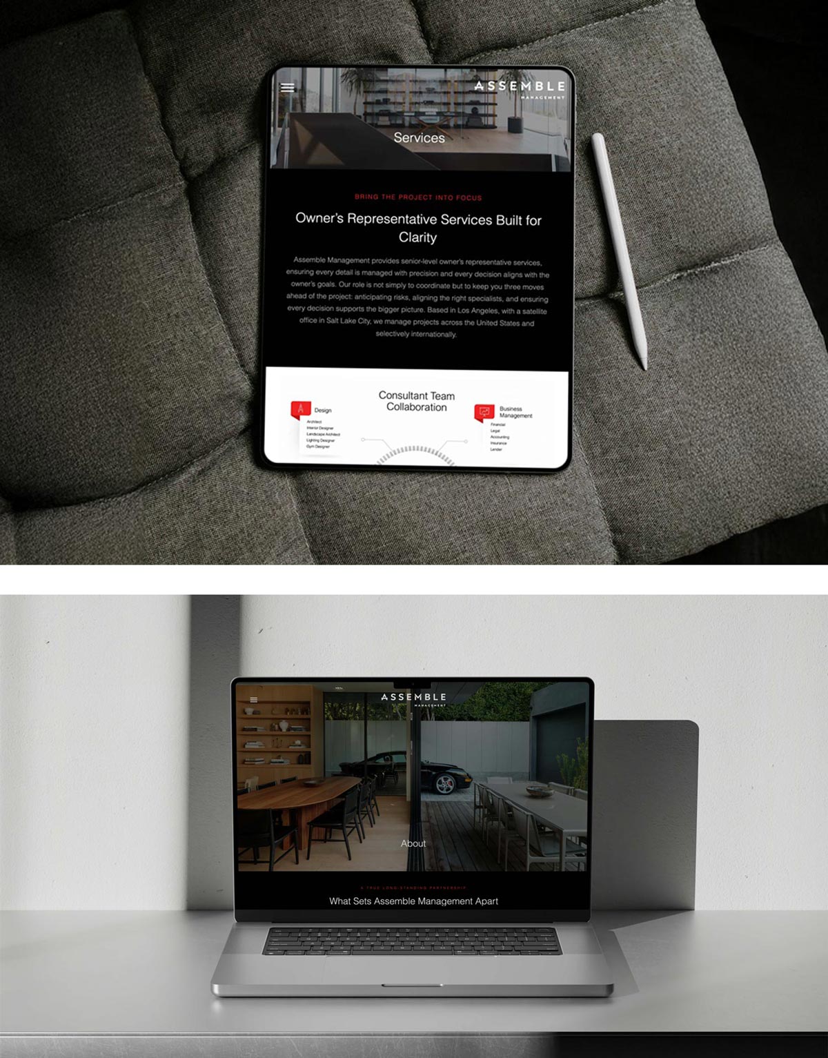 Savy designed and developed a custom website for Assemble Management that matches the firm’s premium positioning in luxury residential project management. The site features a cinematic, imagery-driven design with a full-screen video hero, refined dark palette, and purposeful typography that guides visitors through the firm’s services, project portfolio, and client testimonials. Optimized across devices, the result is a digital presence as polished and intentional as the projects Assemble oversees.